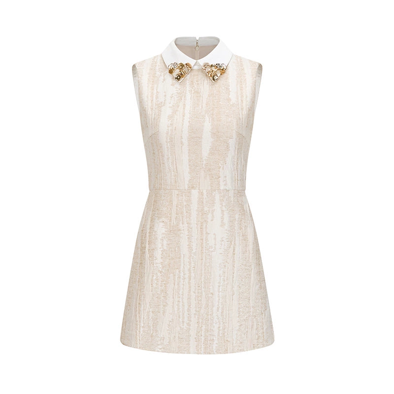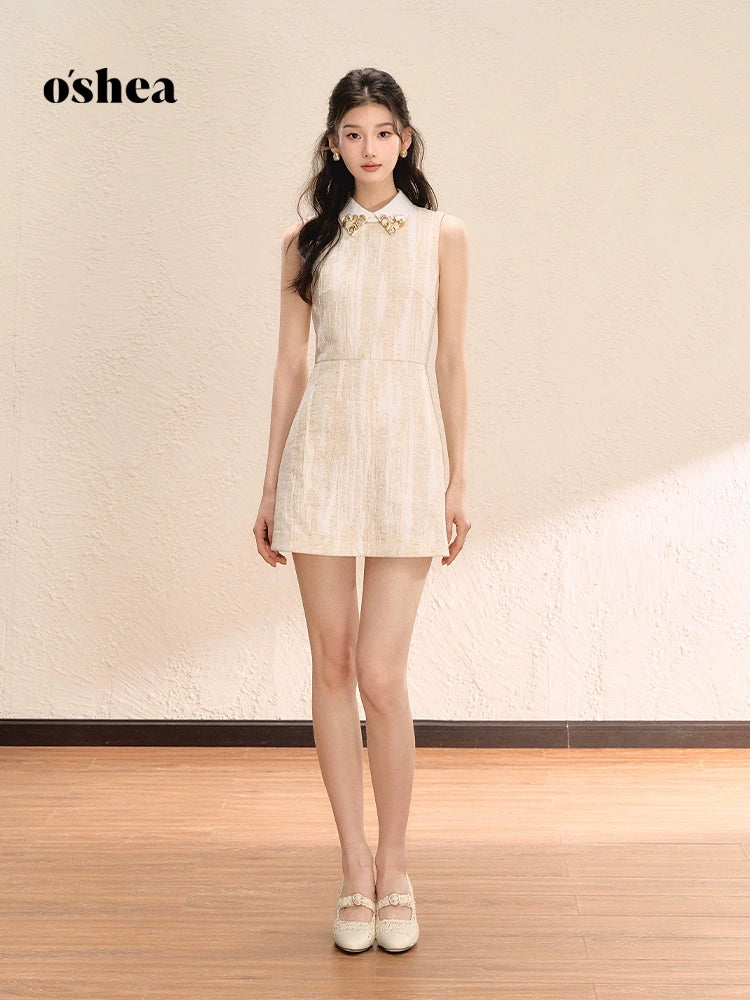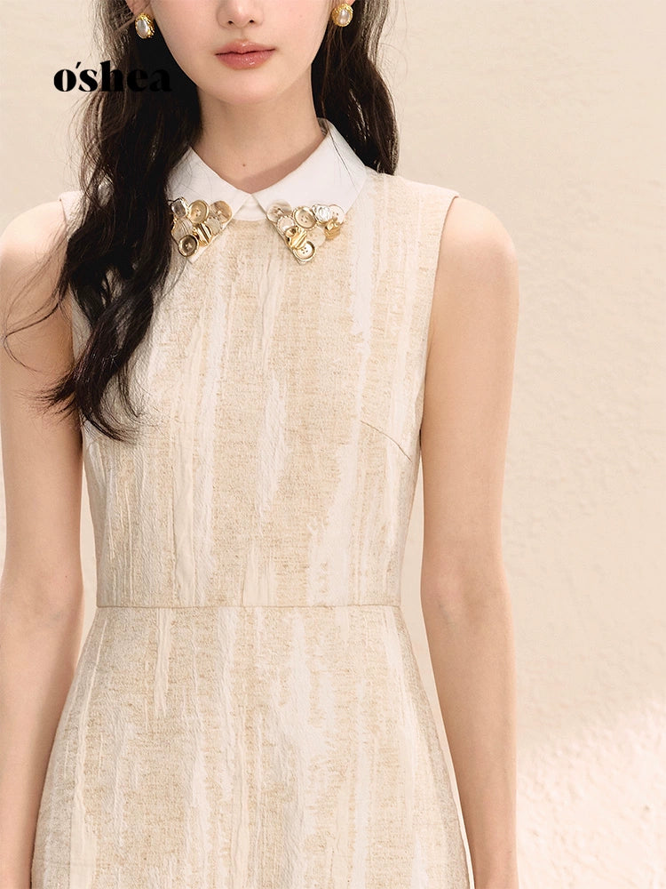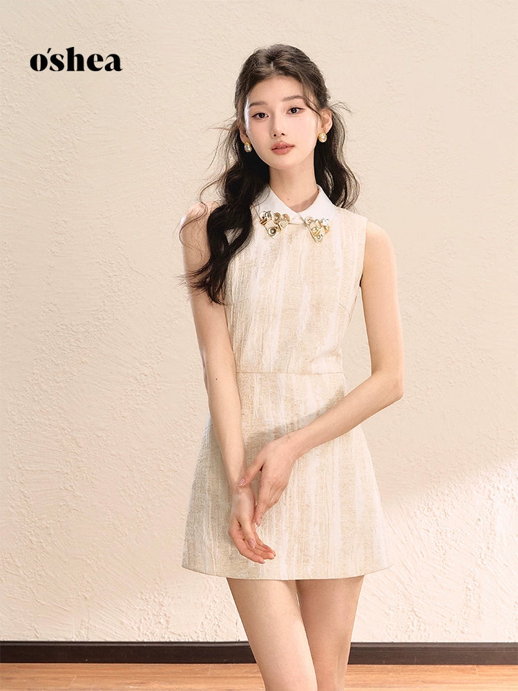 Oshea French Heavy Industry Daughter Style Dress 2025 New Summer Sleeveless Bead Button Waist Design Short Skirt