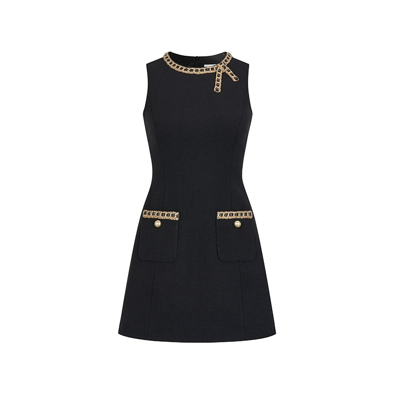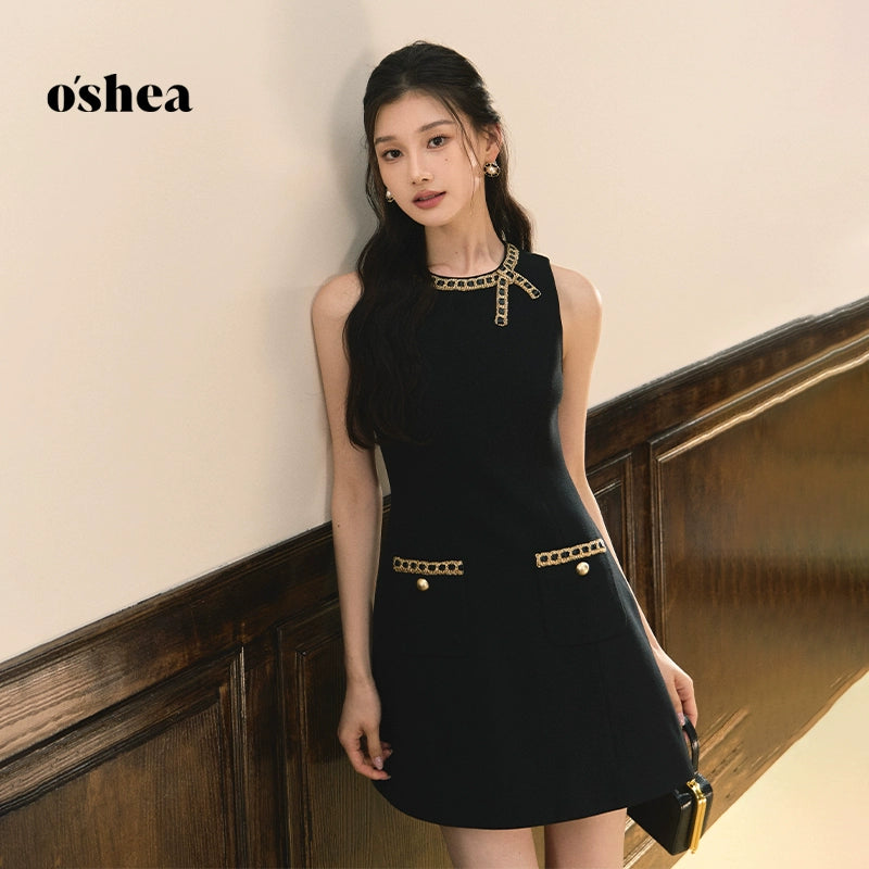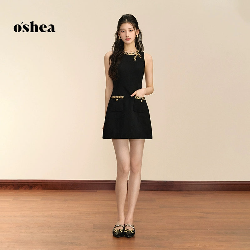 Oshea French Style Sleeveless Dress For Women In Summer 2025 New Gold Wire Slim Miu Series Short Black Skirt