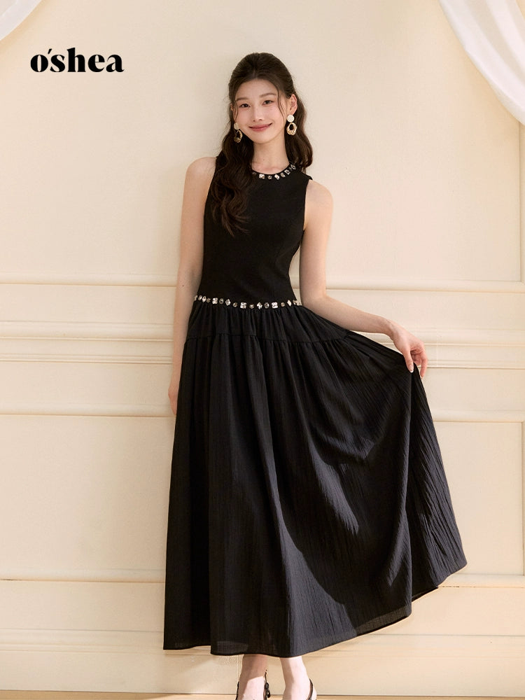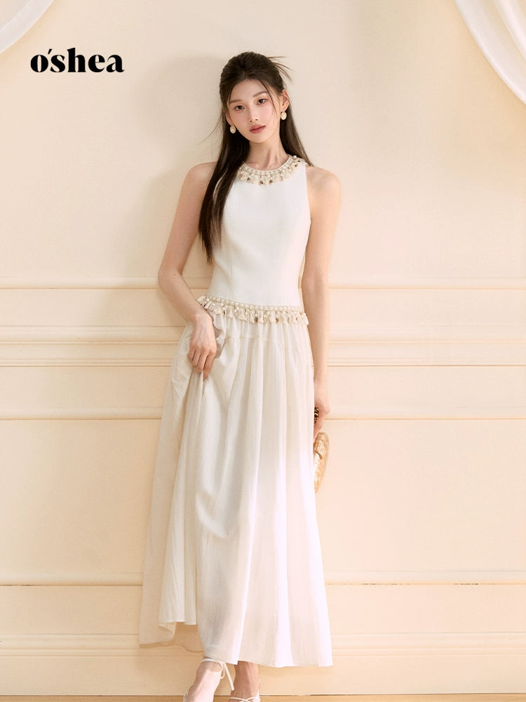 Oshea Heavy Industry Daughter Style Dress 2025 New Summer Sleeveless Holiday Beach Style Vest Dress Long Dress