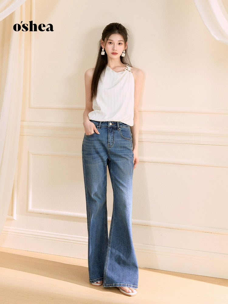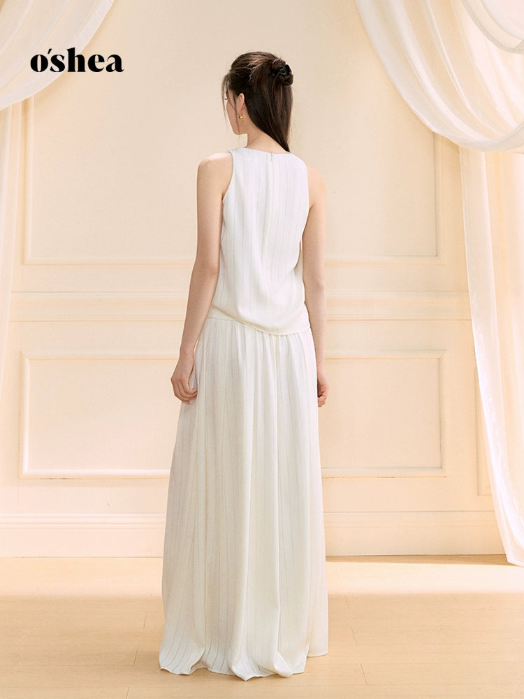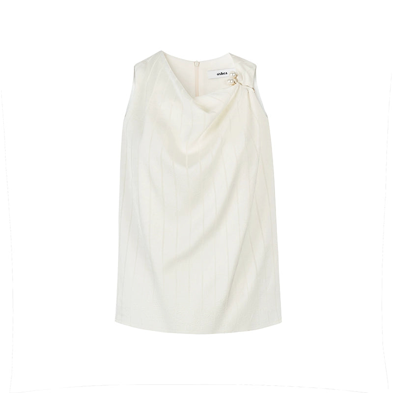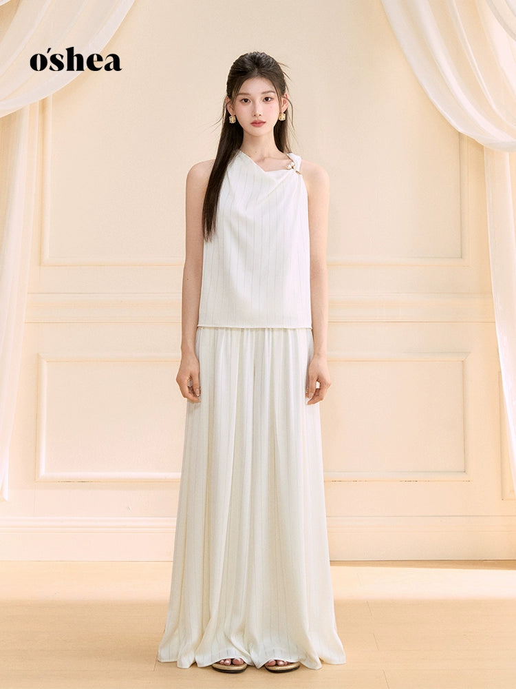 Oshea Star Dew White Old Money Style Swing Collar Shirt Women'S 2025 New Summer Thin Sleeveless Top Wide Legs Pants Set