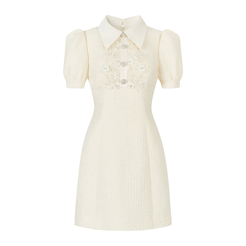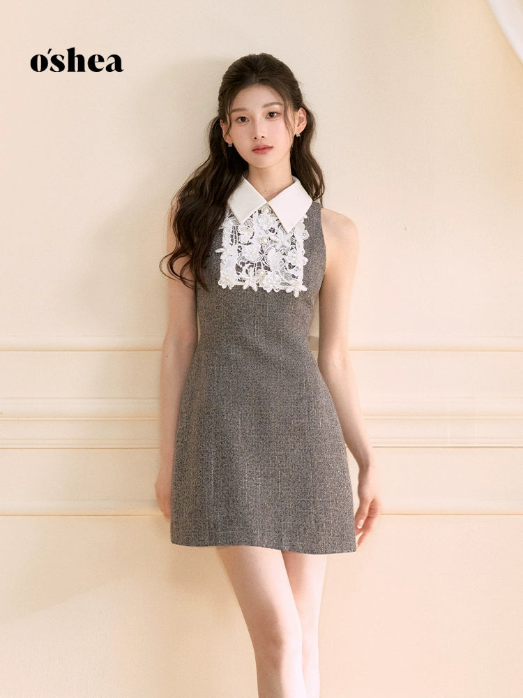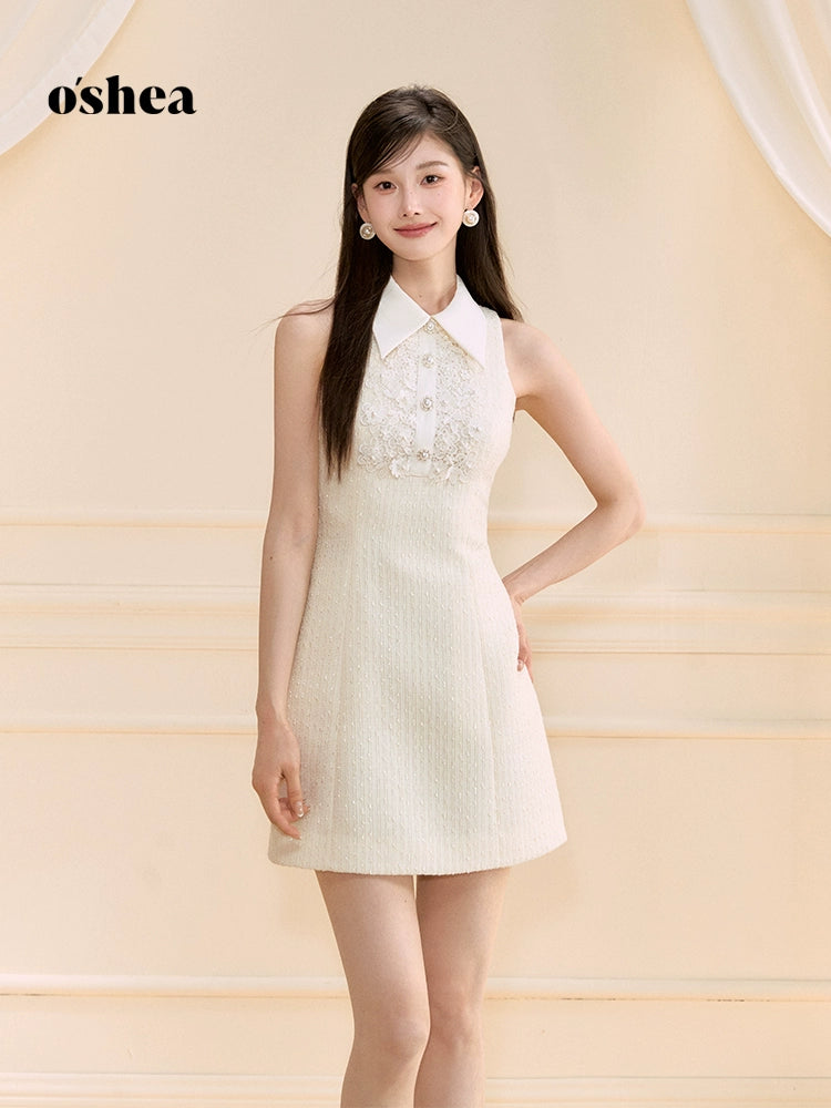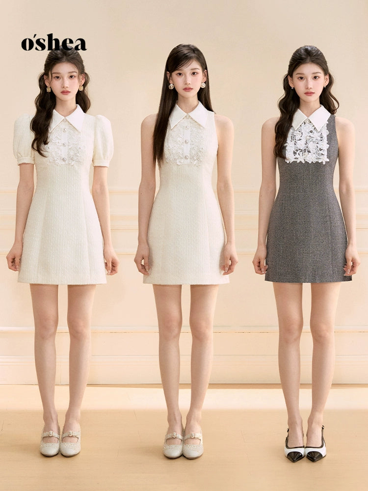 Oshea Lace Pearl Daughter Style Dress 2025 New Summer Women'S Heavy Industry Slim Western Short Skirt A-Line Skirt