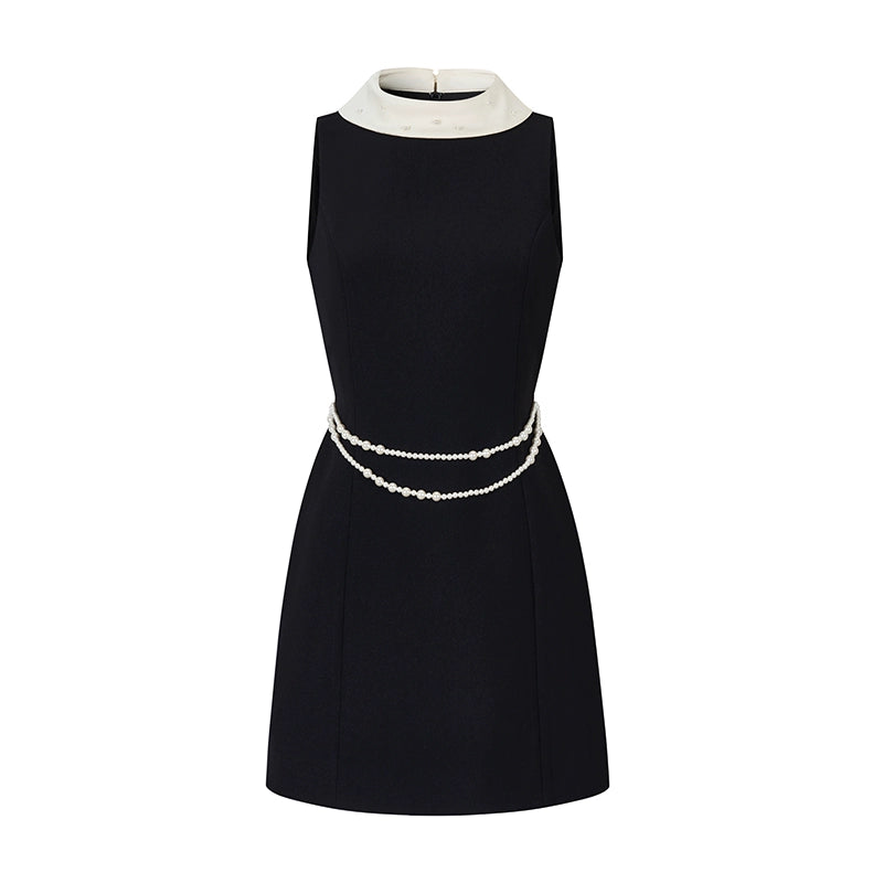 - The contrasting color collar is decorated with pearls of various sizes, exuding an exquisite and noble air.
