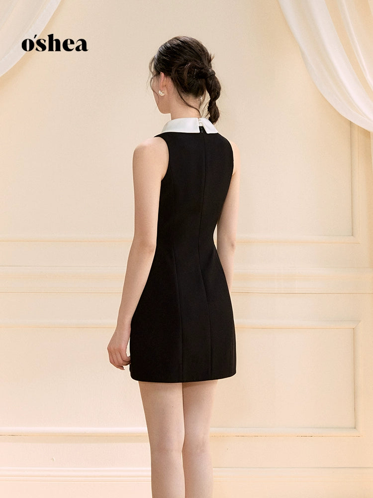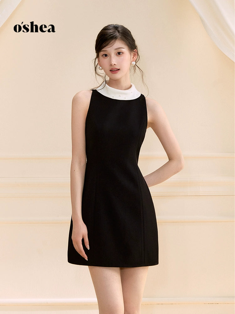 Oshea Star Black Contrast Color Daughter Style Dress 2025 New Summer Waist Sleeveless Vest A-Line Skirt
