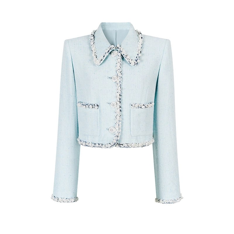 Oshea Blue Scented Golden Short Jacket For Women 2025 New Autumn Slim Pearl Webbing Fashion Suit