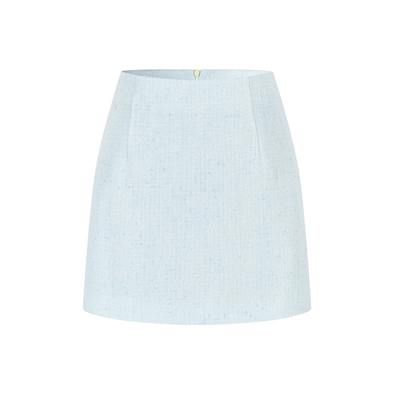 - A half-length skirt that connects the waist blurs the waistline and visually highlights the body proportions.