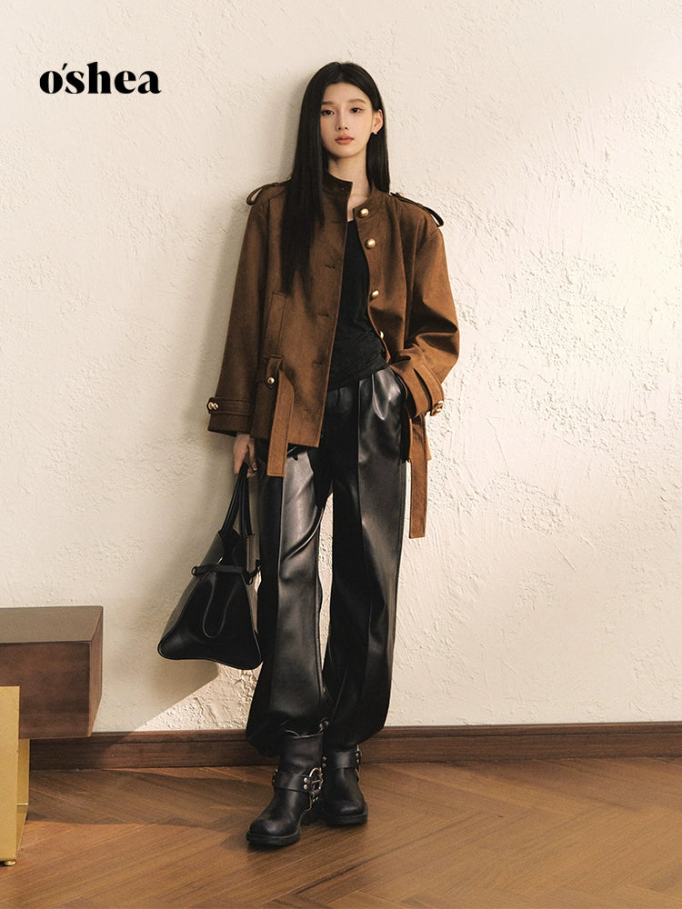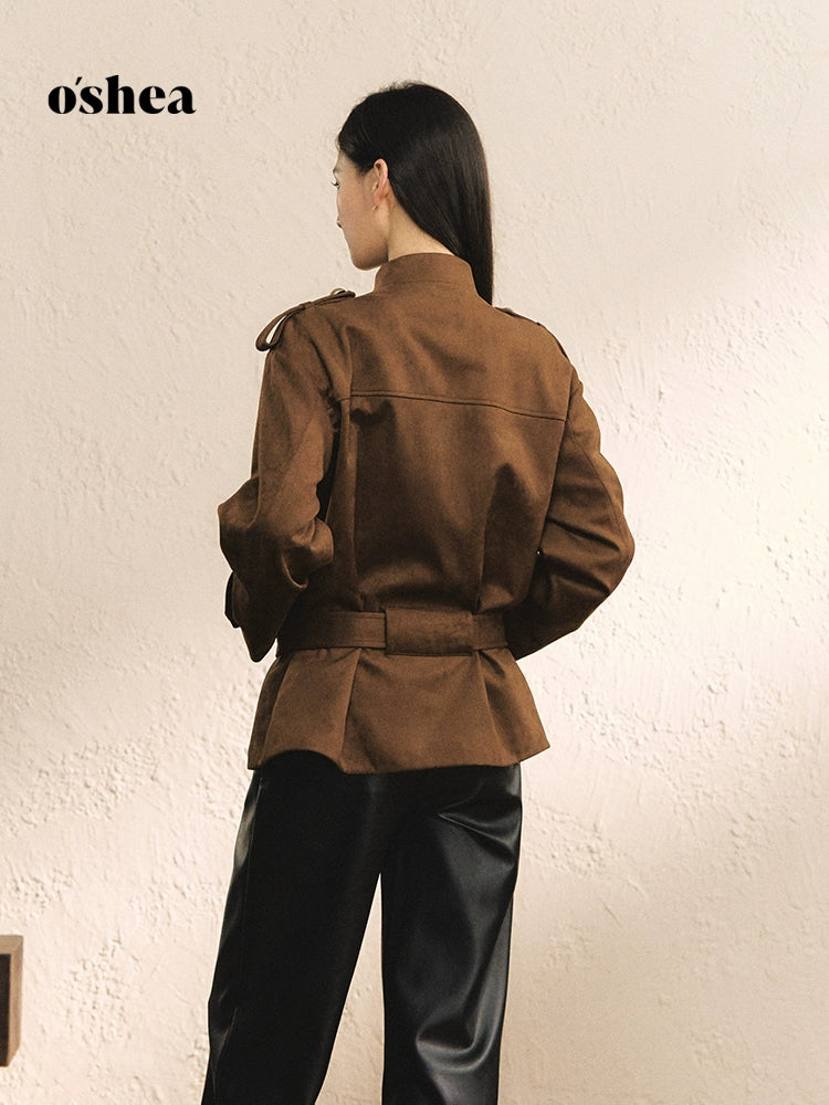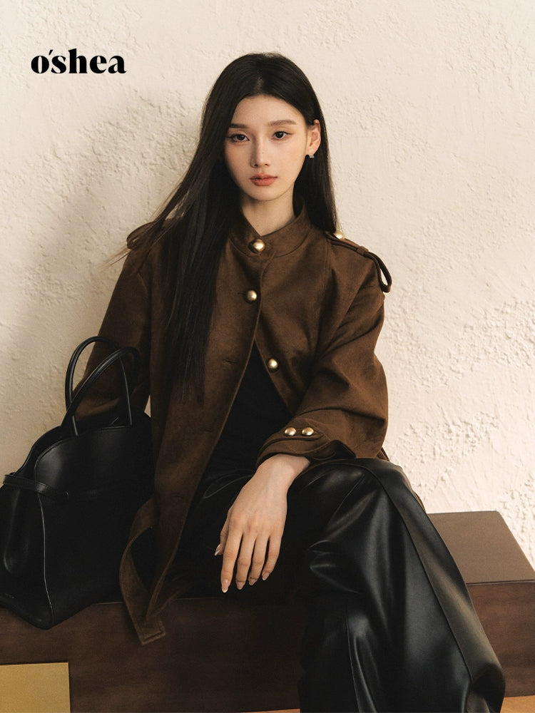 Oshea Autumn And Winter Brown Suede Jacket | Old Money Light Luxury High-End Feeling | Maillard Casual Short Windbreaker Jacket